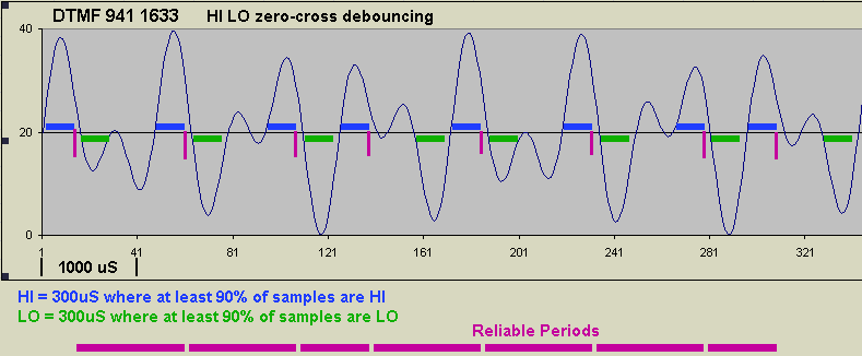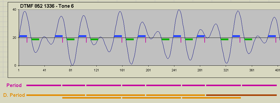 to the frequencies of the 2 sinewaves in the DTMF waveform, the next step was