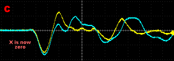 I tapped point "A" and recorded the result on the 'scope, see below;