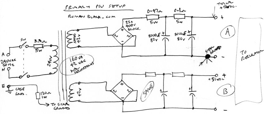 by the dual regulators in the secondary psu. This was easy enough as the
