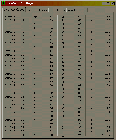 During the rewrite I added lists of PC keyboard codes; ascii, extended and