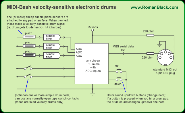 few extra electronic parts the MIDI-Bash gets full velocity sensing.