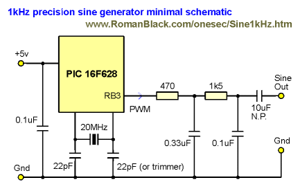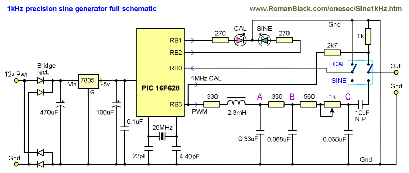 Using a 16F628 to generate an accurate 1kHz sine in software for calibration and test use