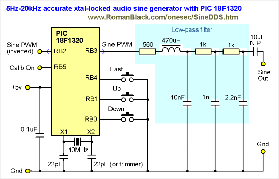 Using an 18F1320 to generate xtal-locked accurate sinewaves from 5Hz to 20kHz