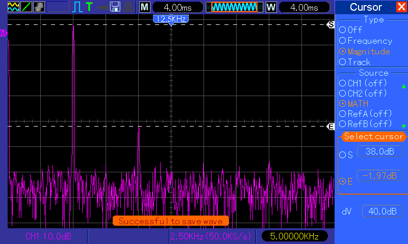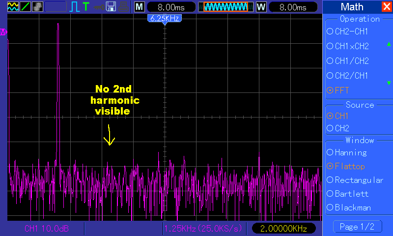 2nd harmonic (which is 2kHz) is barely above the noise floor. Cursors show