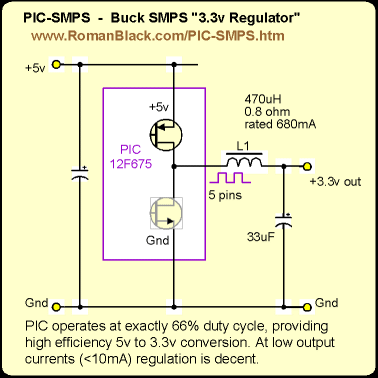 PIC as a Buck regulator 5v to 3.3v converter