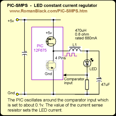 for LED current sensing. Then the PIC comparator (PIC 12F629 or 12F675)