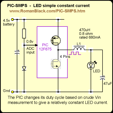 constant. It uses the PIC 12F675 ADC to compare the ADC voltage from the diode