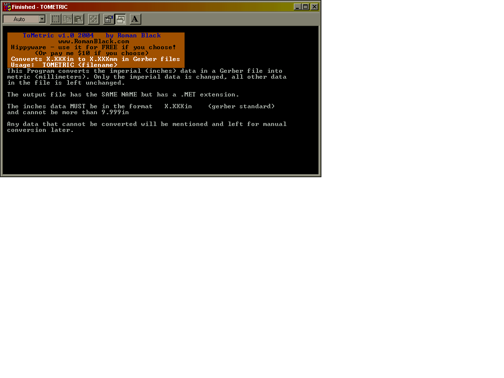 components (metric) ToMetric 1.0 scans through the text (Gerber) file and