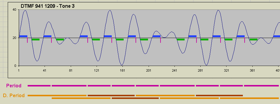to the frequencies of the 2 sinewaves in the DTMF waveform, the next step was