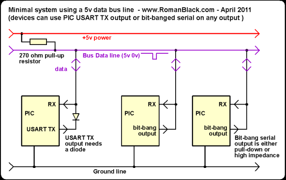 uses a simple 270 ohm pull-up resistor for the entire data bus.
