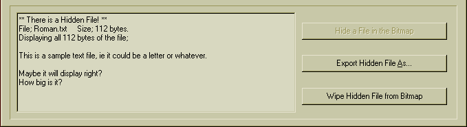If the bitmap contains a hidden file its filename is displayed and