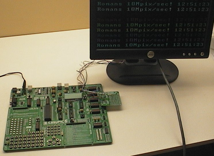 These are the functions I provided; void RomanEXP_init(void); // do first, inits EasyPIC6 SPI port expander IC void RomanEXP_lcd_init(void); // do next, inits the EasyPIC6 COG LCD void RomanEXP_lcd_move(unsigned char line, unsigned char col); // move LCD cursor void RomanEXP_Lcd_Char(unsigned char tchar); // displays a text char on LCD (at cursor) void RomanEXP_Lcd_Out(unsigned char line, unsigned char col, unsigned char *text); // display text string