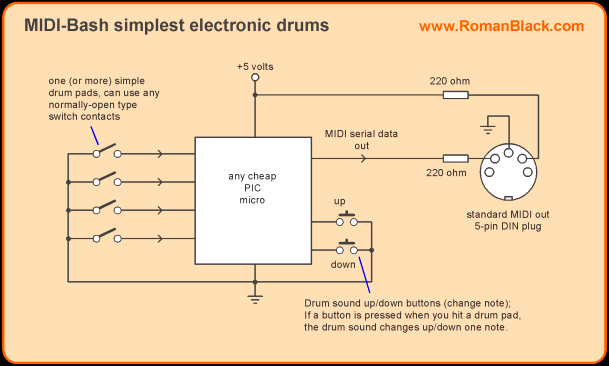 Below you can see the simplest MIDI-Bash circuit. Apart from a