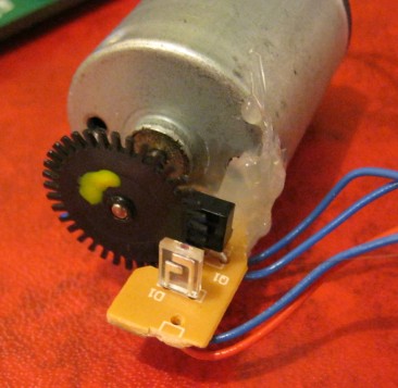 disk, and with a minimum 1 slot disc it will make 4 pulses per motor rev,