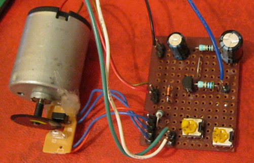 The DC motor I was using was a nice low-RPM motor type, tested at only