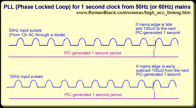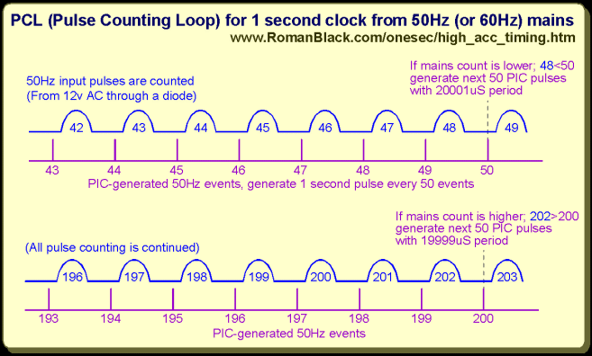 A "mains disciplined" clock would be to run the PIC xtal at a steady frequency