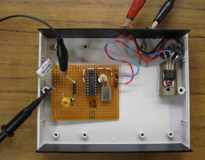 A PIC 16F628 was set up with nothing more than a 5v regulator and 20MHz