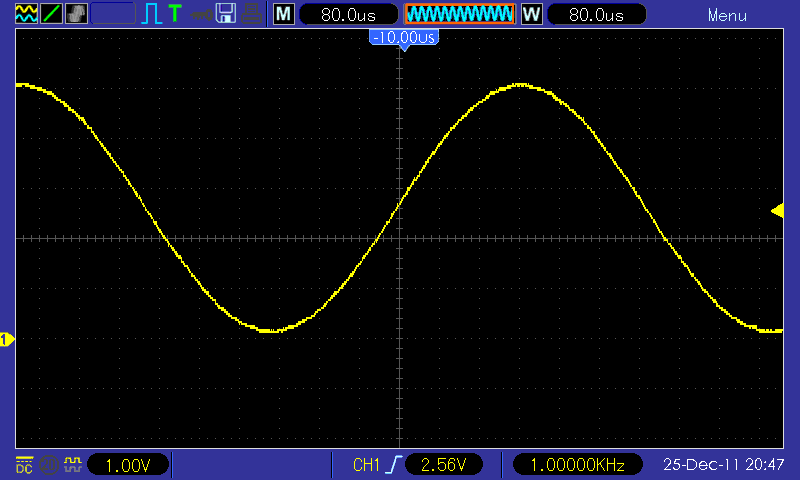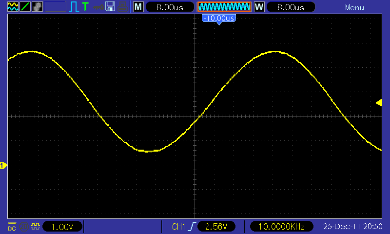 You can see that due to my filter choice the sinewave is reduced a bit