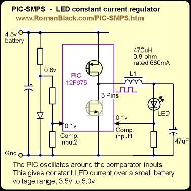 for LED current sensing. Then the PIC comparator (PIC 12F629 or 12F675)