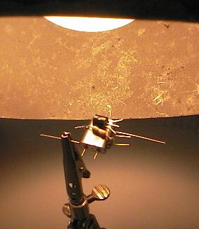 12. Cure the araldite under a desk lamp (see above) at "warm sun"